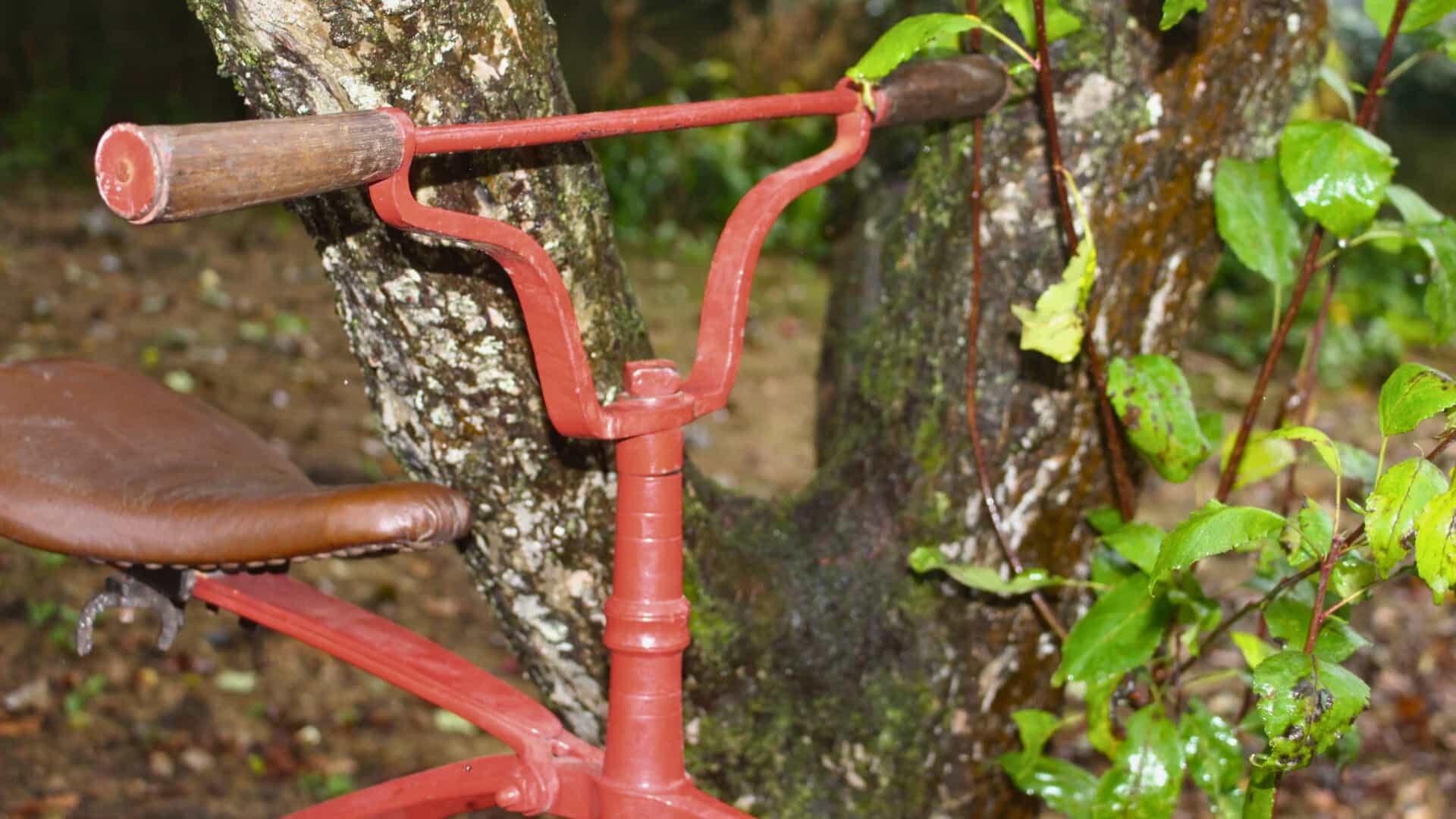 Oak smokers bow chair red antique leather